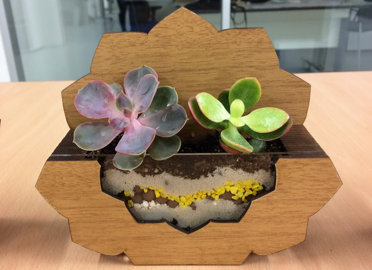 Jednotlivé časti bolo treba už len správne poskladať a zlepiť. Do otvoru sme na záver pridali substrát a sukulent, či inú izbovú rastlinu. Aj tu sa dalo vyšantiť s farbami, ktoré dali výslednému doplnku jedinečný vzhľad.