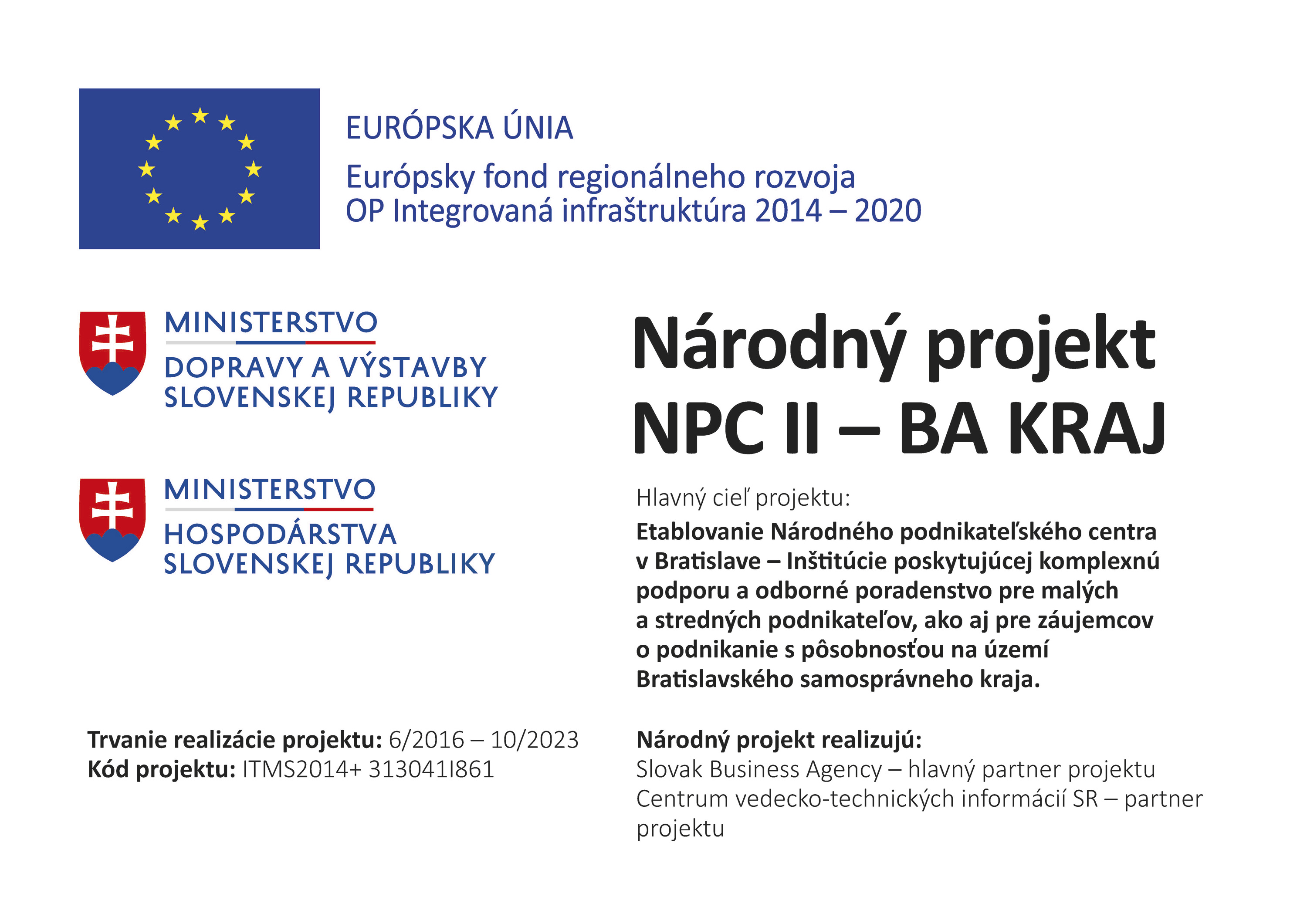 V rámci národného projektu NPC II – BA kraj je podpora činnosti a rozvoj podnikateľského centra v Bratislavskom kraji realizovaná v dvoch samostatných hlavných aktivitách: