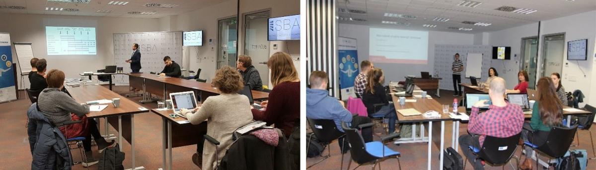 Na fotografiách: vľavo odborný seminár „Financovanie podnikania od začiatku po expanziu“ vpravo workshop „PPC reklama pre začiatočníkov a mierne pokročilých“.
