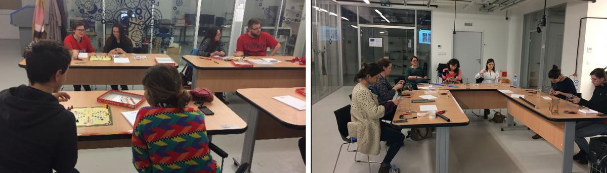 Fotografie z tohtoročných workshopov „DIY: Urob si vlastnú hru“ a „DIY: Drôtený stojan na šperky“.