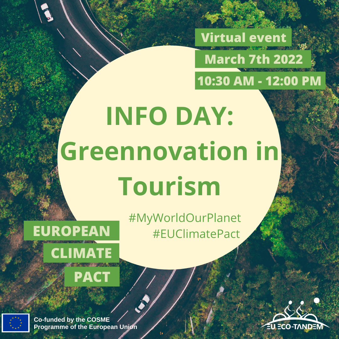 Už 7. marca 2022 o 10:30 predstavíme projekt EU ECO-TANDEM na podujatí „Greennovation in Tourism: Info Day“ v rámci satelitných podujatí Európskeho klimatického paktu!