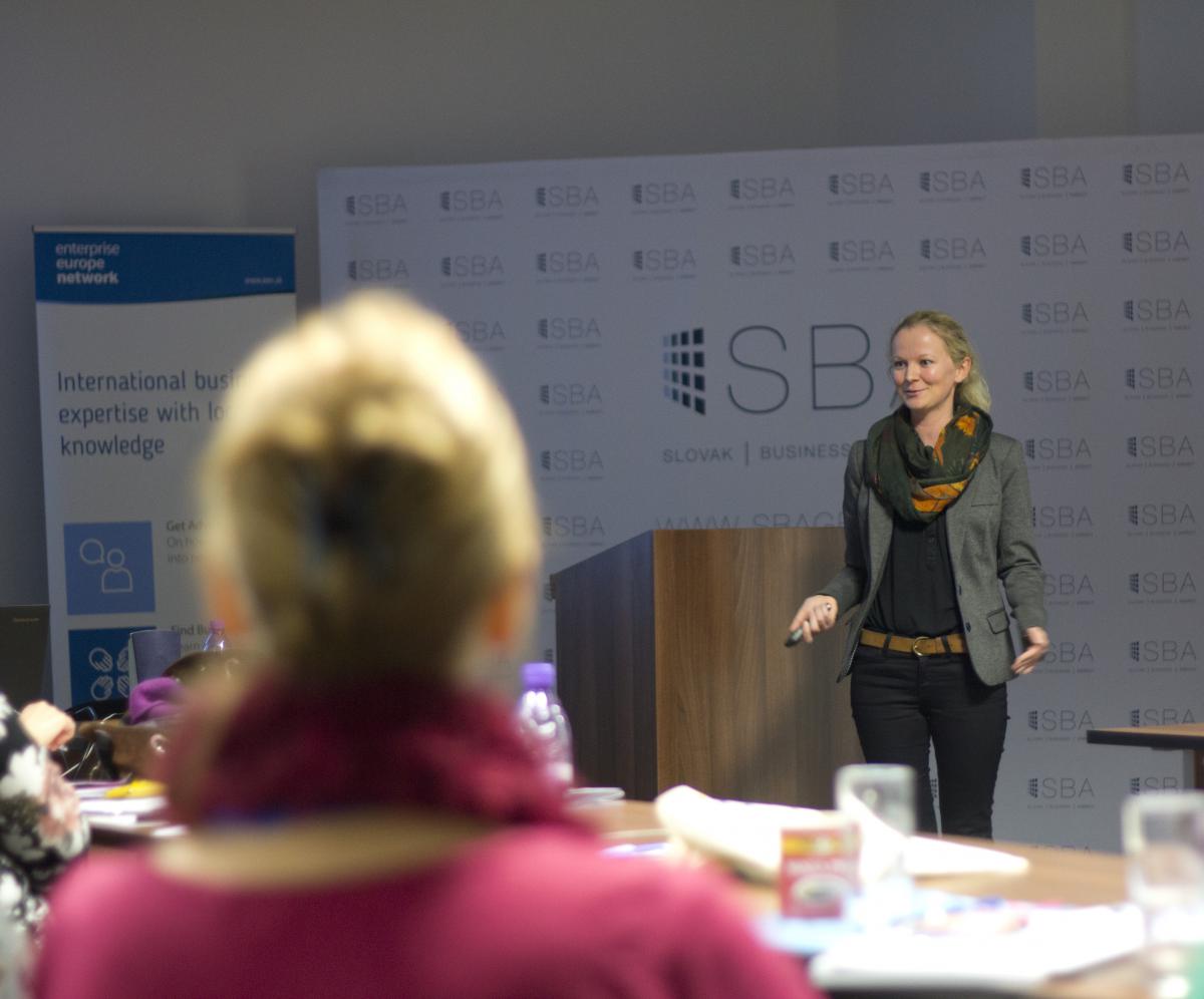 Dominika Bíziková odprezentovala služby, projekty a činnosti Slovak Business Agency, ktorá je hostiteľskou organizáciou v oblasti podpory malých a stredných podnikova zároveň poskytuje podporu a rozvoj pre oblasť podnikania žien.