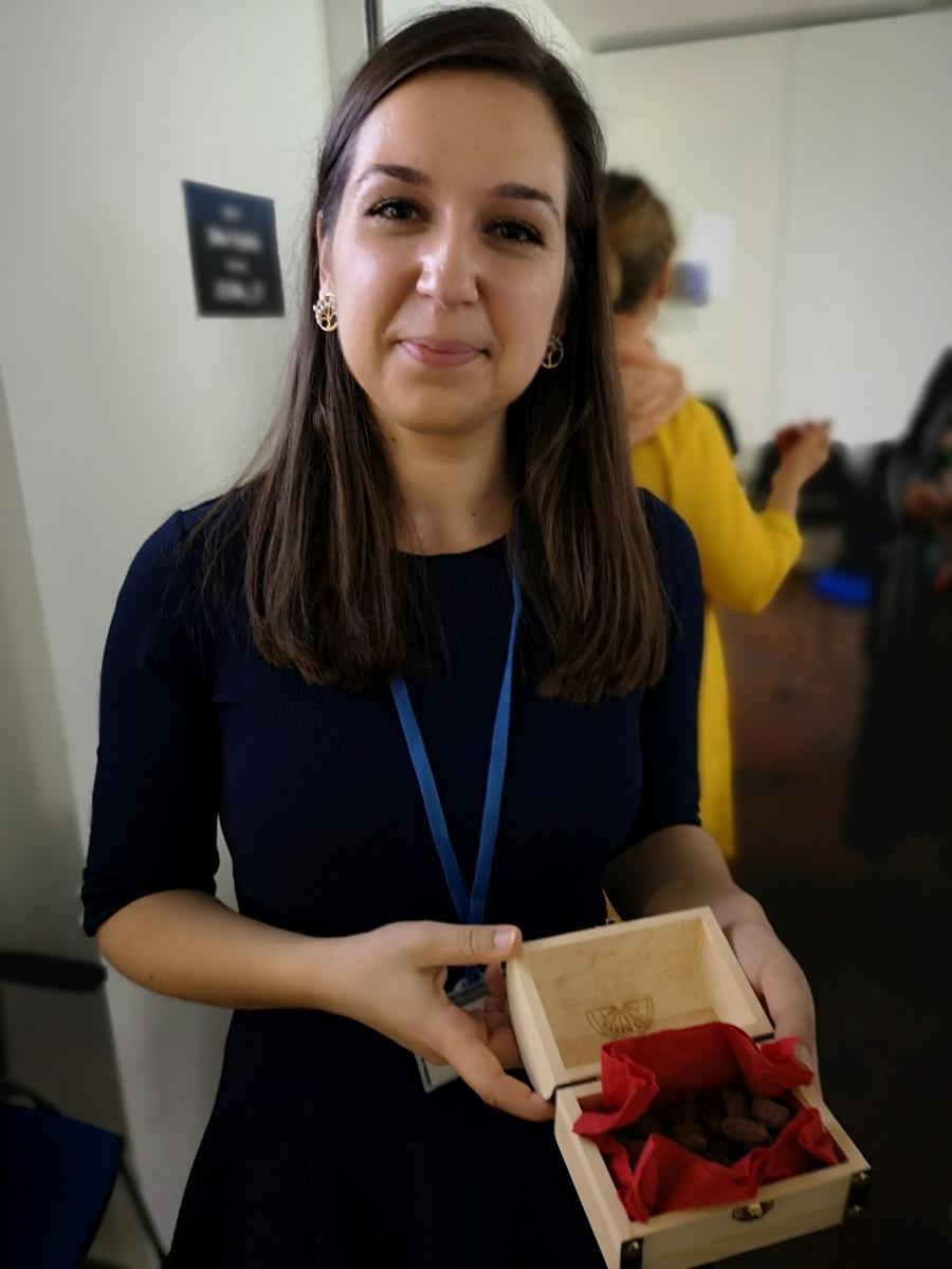 Víťazka Social Pitch Martina Matejíčková z KakawCo+ aj jej produkt – chutné a nutrične bohaté kakaové bôby obalené v kakaovom prášku s cukrovou trstinou.