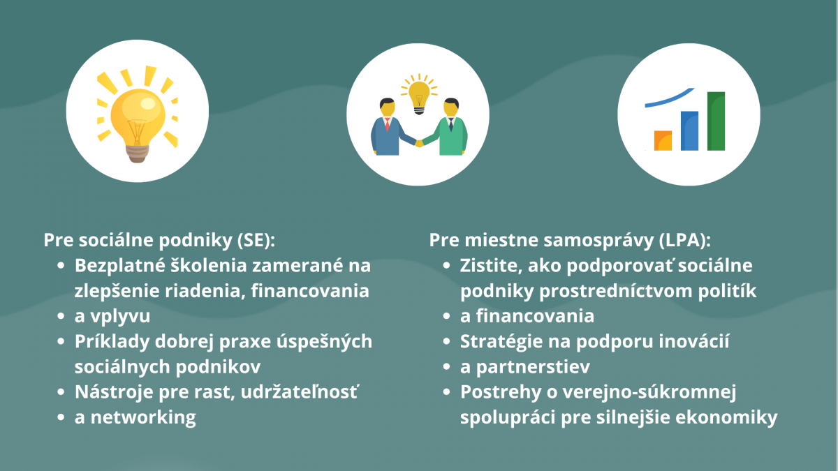 • príklady dobrej praxe úspešných sociálnych podnikov,