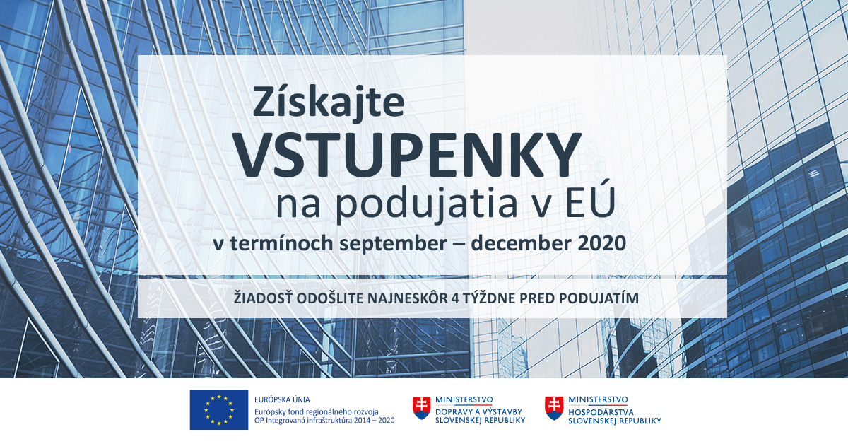 Podnikatelia do 3 rokov, Bratislavský kraj: https://www.npc.sk/sk/services/medzinarodne-podujatia-staze-veltrhy/ucast-na-medzinarodnom-odbornom-podujati/ziskajte-vstupenky-na-podujatia-v-eu/