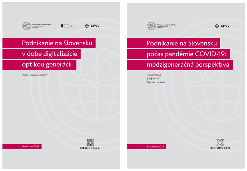 Najrozsiahlejšími výstupmi sú monografie, ktoré sa zaoberajú témami „Podnikanie na Slovensku v dobe digitalizácie optikou generácií“ a „Podnikanie na Slovensku počas pandémie COVID-19: medzigeneračná perspektíva“.