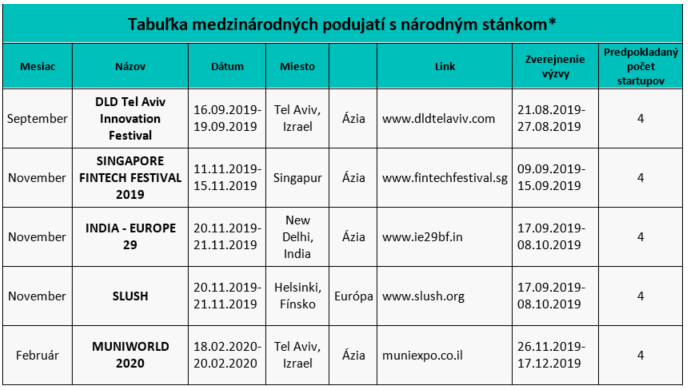 *V priebehu obdobia september 2019 – marec 2020 sa môže Tabuľka medzinárodných podujatí s národným stánkom aktualizovať.