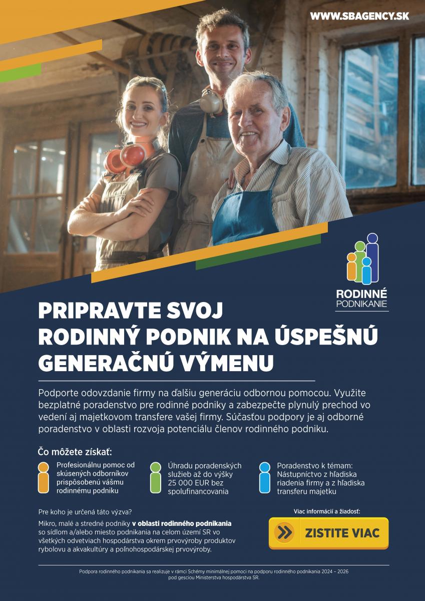 Na vaše otázky vám odpovieme na rodinnepodnikanie@sbagency.sk, alebo tel. č. +421 220 363 123.