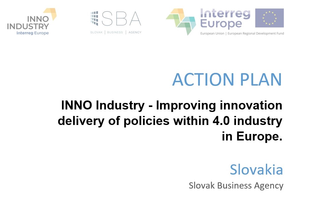 Akčný plán je hlavným výstupom projektu INNO INDUSTRY, ktorý realizuje SBA v rámci programu Interreg Europe s podporou Európskej únie prostredníctvom Európskeho fondu regionálneho rozvoja. Bol vypracovaný v spolupráci s Ministerstvom hospodárstva SR, Slovenskou inovačnou a energetickou agentúrou a organizáciami, ktoré ho budú následne aj implementovať. Stakeholderom projektu bol predstavený na regionálnom stakeholder workshope dňa 21.10.2021 a oficiálne prezentovaný účastníkom INNO INDUSTRY konferencie na tému „Zlepšenie inovačných politík v oblasti priemyslu 4.0“ dňa 19.1.2022. Ministerstvo hospodárstva SR vyjadrilo podporu implementácii akčného plánu v koordinácii s relevantnými stakeholdermi.