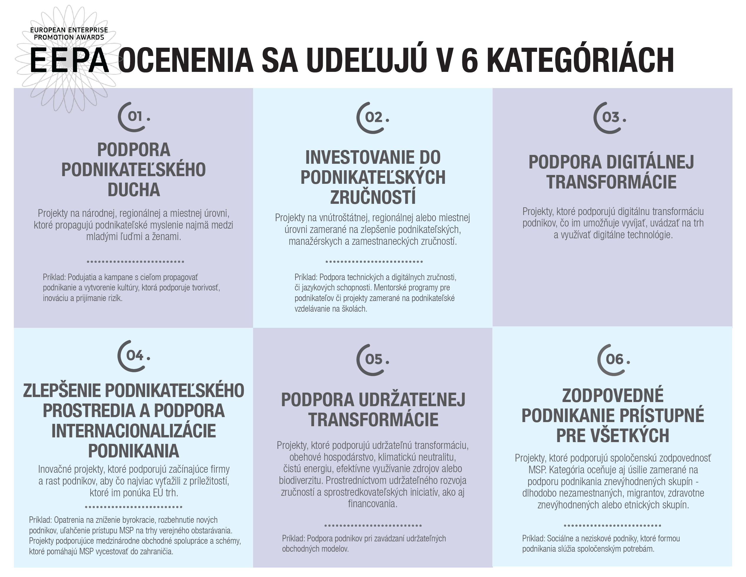Ocenenie EEPA organizuje Európska komisia a prináša príležitosť získať národné i medzinárodné uznanie v šiestich kategóriách. Odborníci udelia aj Veľkú cenu poroty iniciatíve, ktorú budú považovať za najinšpiratívnejšiu.