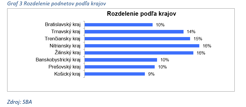 Do prieskumu sa zapojilo 877 malých a stredných podnikov. Z daného počtu je 751 mikro firiem (1-9 zam.), 102 malých firiem ( 10-49 zam.) a 24 stredných firiem ( 50-249 zam.). Respondenti boli z celého Slovenska a najviac podnetov prišlo z Nitrianskeho a Žilinského kraja.