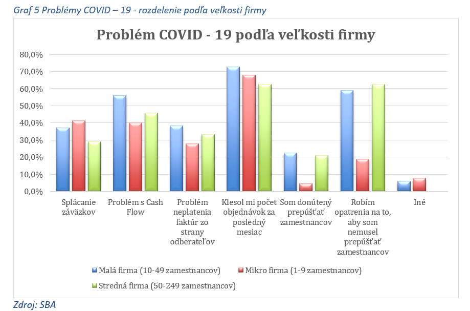 Pokles objednávok zaznamenali najviac mikro, malí aj strední podnikatelia (podnikatelia zo všetkých troch skupín bez ohľadu na ich veľkosť). Ku prepúšťaniu zamestnancov sú donútené najviac mikro firmy. Stredné firmy sa najviac  snažia robiť opatrenia na to, aby nemuseli pristúpiť ku prepúšťaniu.
