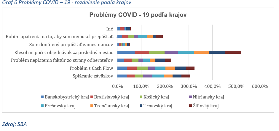 Odpovede zo všetkých regiónov Slovenska sú zosumarizované v nasledujúcich grafoch. Prevažnej väčšine podnikov klesol za posledný mesiac počet objednávok.  Problém s Cash Flow, prinútil menšie firmy, hlavne tie s kamennými prevádzkami už teraz prepustiť ľudí a zavrieť prevádzku.  Z grafu vidíme, že niektorí podnikatelia sa snažia robiť opatrenia a neprepúšťať zamestnancov celoplošne. Situáciu riešia napríklad aj znižovaním úväzkov.